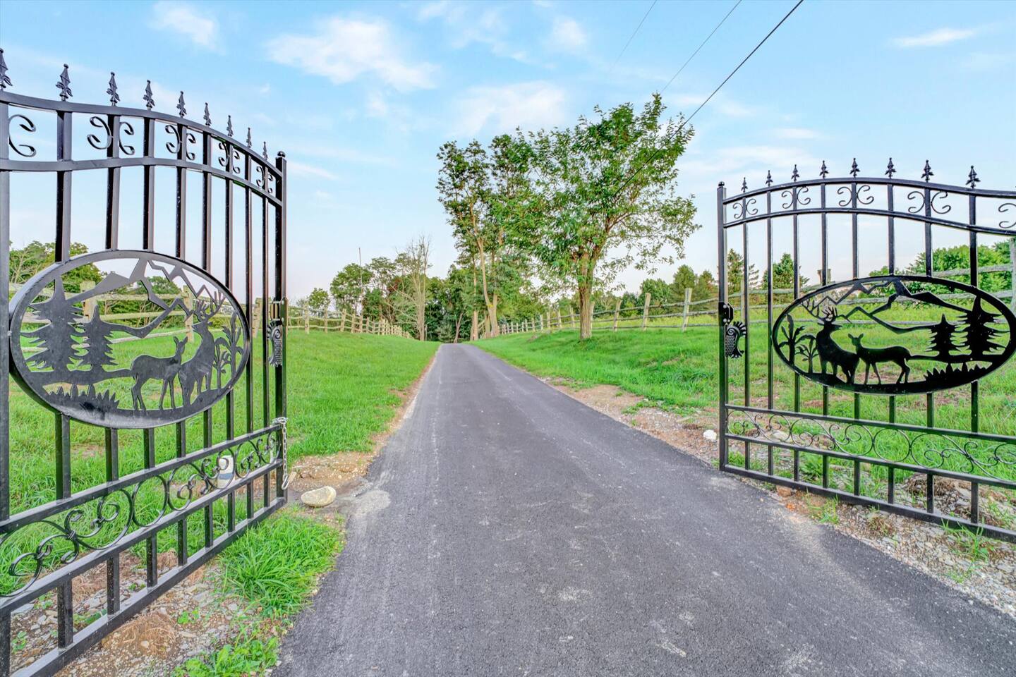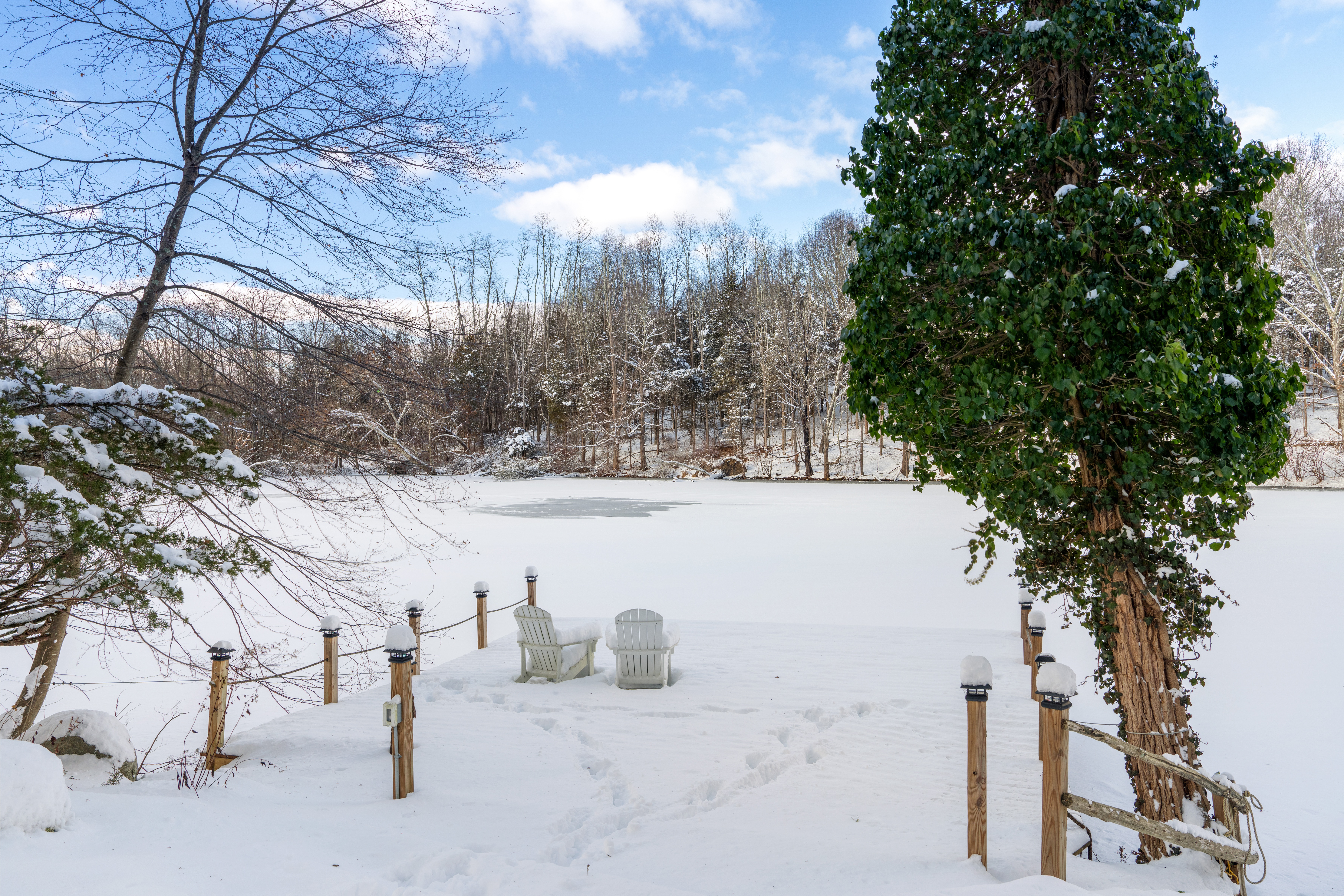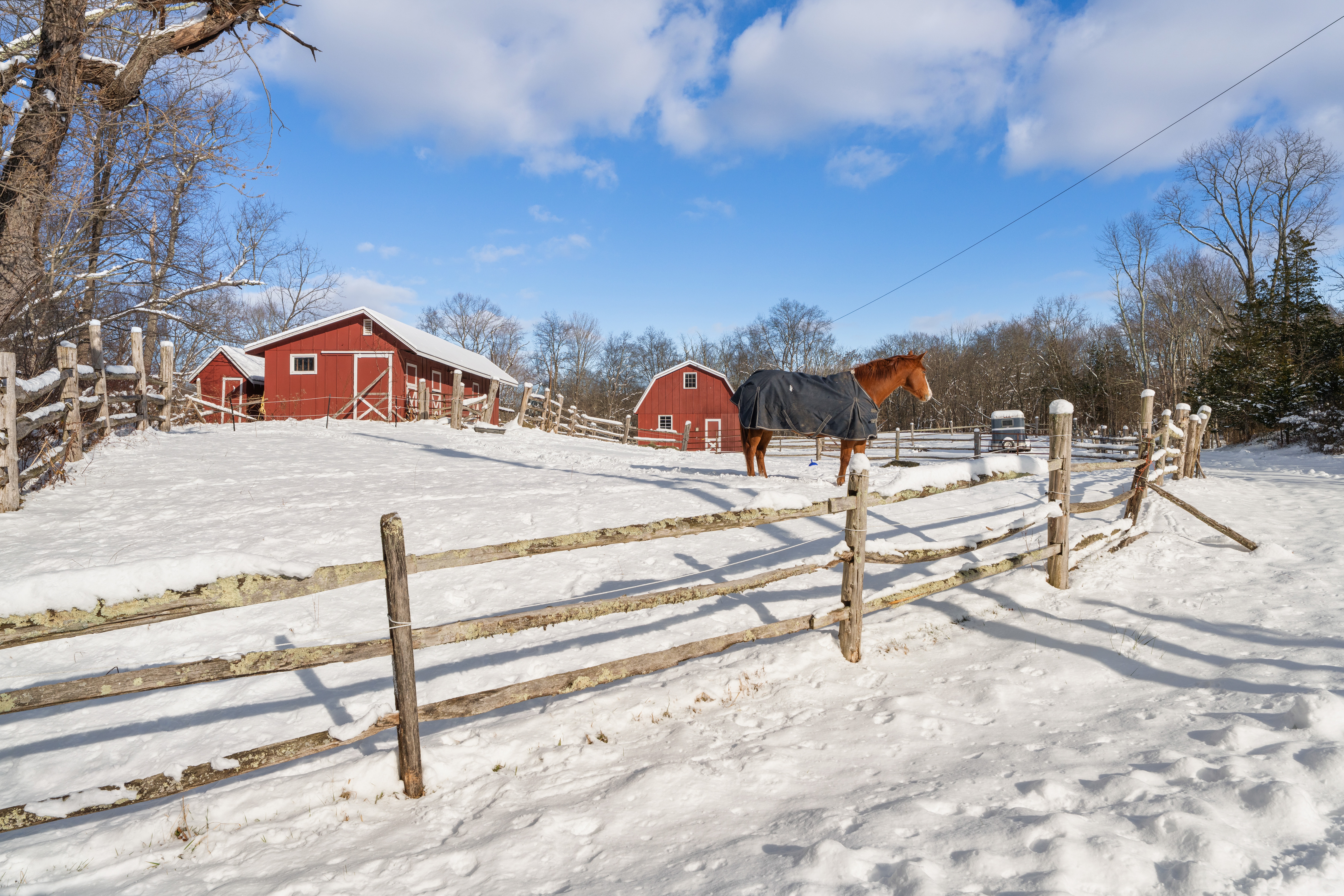 The property is completely open with no fencing other then the front gate. Please enjoy the tennis court, lake and hiking trails but be understanding of our neighbors property lines which are marked by either a stone wall or POSTED / PRIVATE PROPERTY signage.