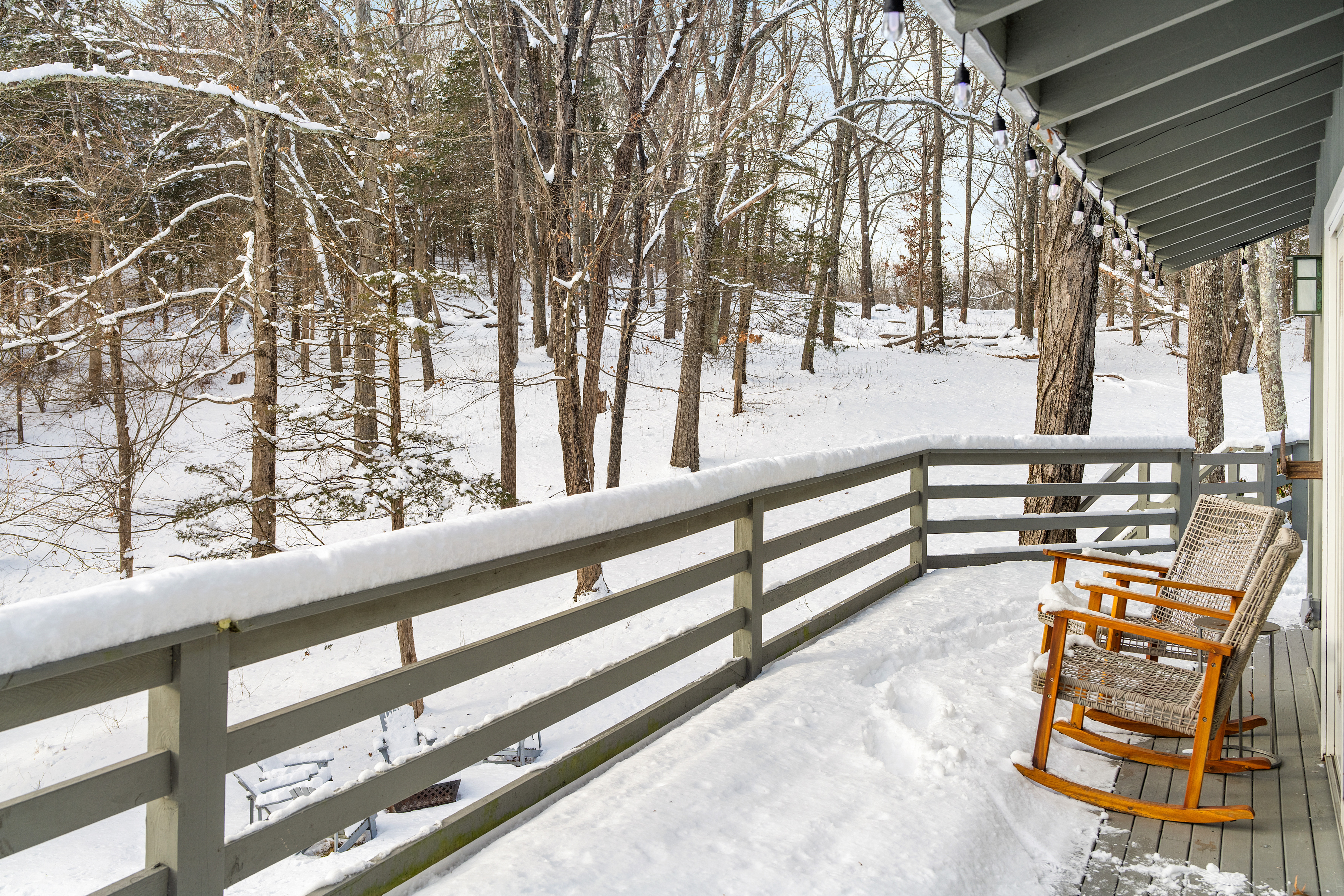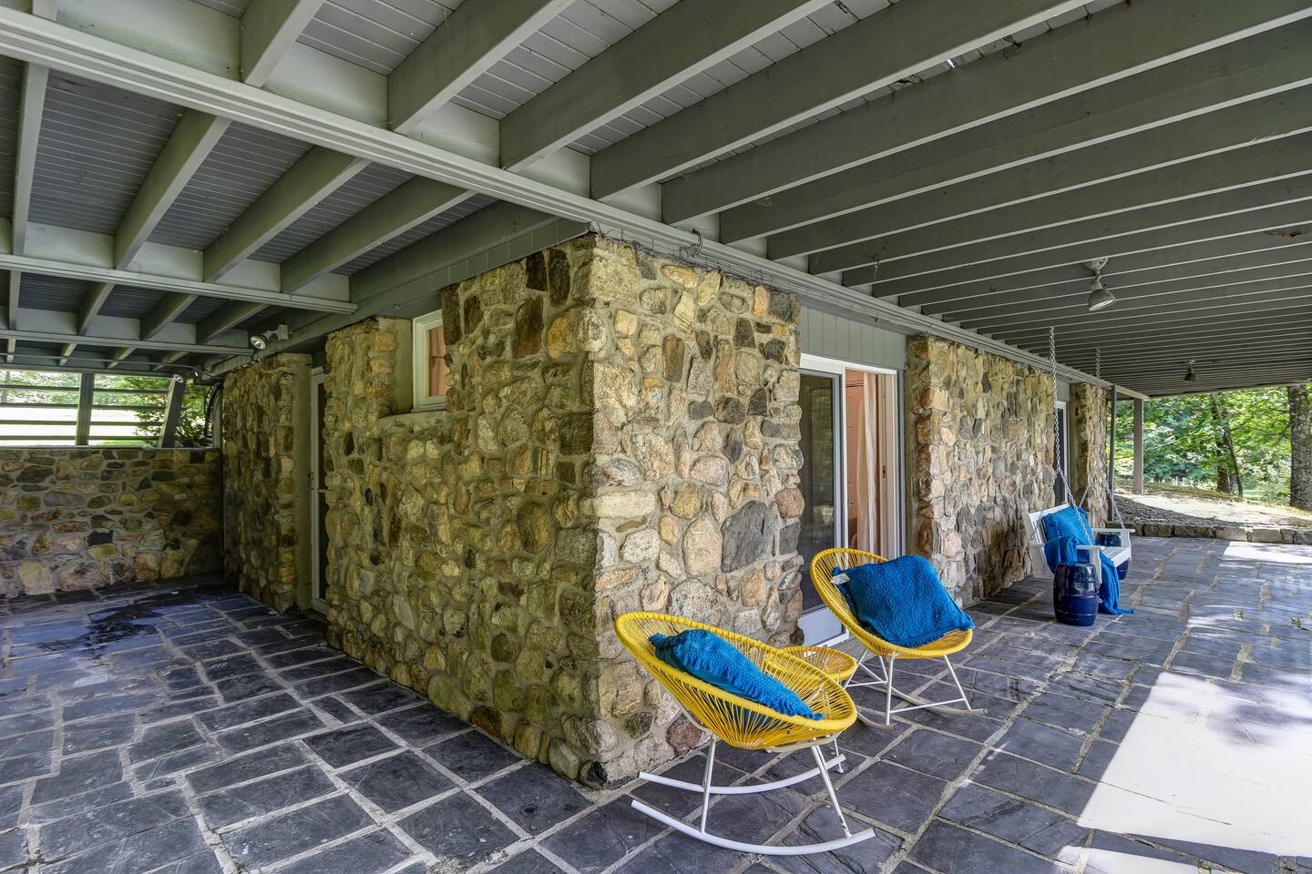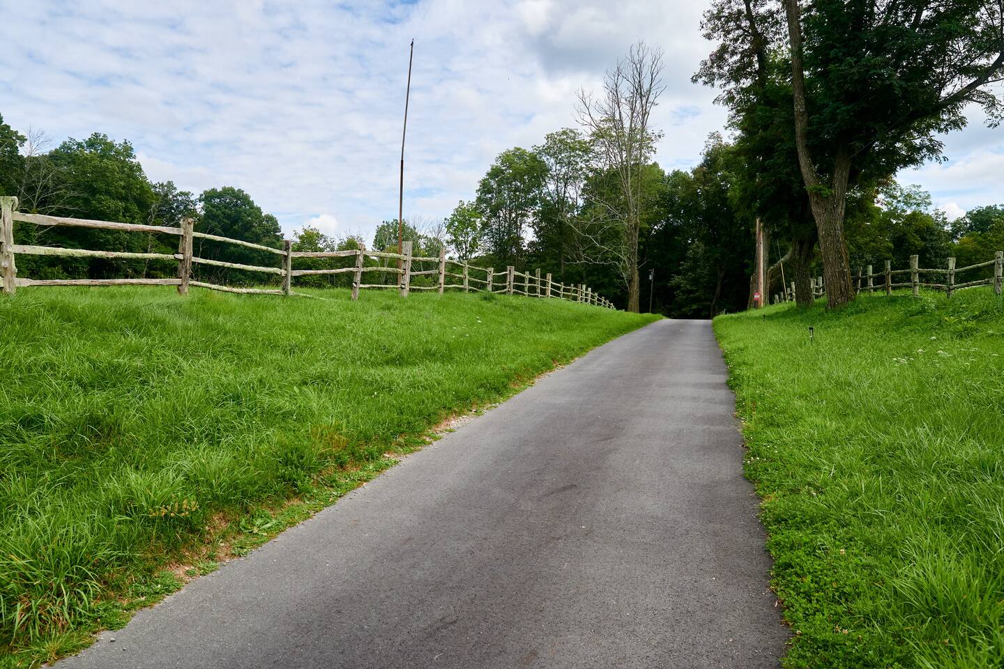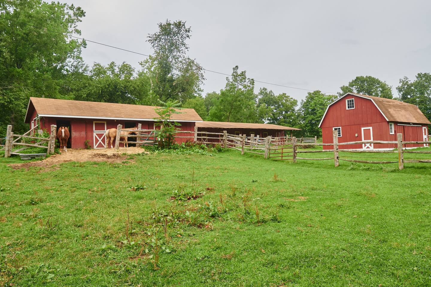 The property is completely open with no fencing, aside from the front gate. You’re welcome to enjoy the tennis court, lake, and hiking trails, but please be mindful of our neighbors’ boundaries. Property lines are clearly marked with either a stone wall or POSTED / PRIVATE PROPERTY signs. All guests or visitors to the property must be counted and announced in advance. No surprise visitors or parties are allowed without prior knowledge.