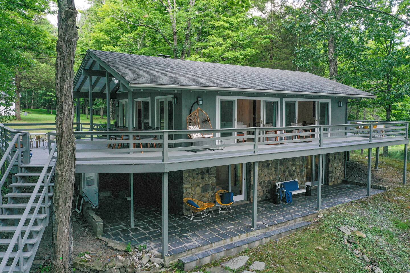 Welcome to our beautiful lakefront retreat—a farmhouse-style cabin/chalet set on nearly 200 private acres. Unlike a community setting, this property offers complete privacy and seclusion. There are two other homes on the property (both owned by us), but you’ll be staying in the ACHIEVE Lakefront Cabin. Please follow the signage upon arrival. The entrance features a large black gate and a long paved driveway. You’ll receive your personalized gate code upon check-in for secure, easy access. 🌊 Included Amenities --> Kayaks & pedal boats -->Outdoor fire pit & indoor fireplace --> Newly refinished tennis court (rackets provided) And much more to enjoy during your stay! 📍 The property is ideally located near Blair Academy, several national parks, golf courses, and horseback riding, making it the perfect home base whether you’re here to relax or explore. 📍 Conveniently located just 1 hour from NYC and 20 minutes from local ski resorts, it’s the perfect year-round escape. 💍 We also welcome weddings, retreats, family gatherings, and special events. Please contact us for details on associated costs and accommodations.